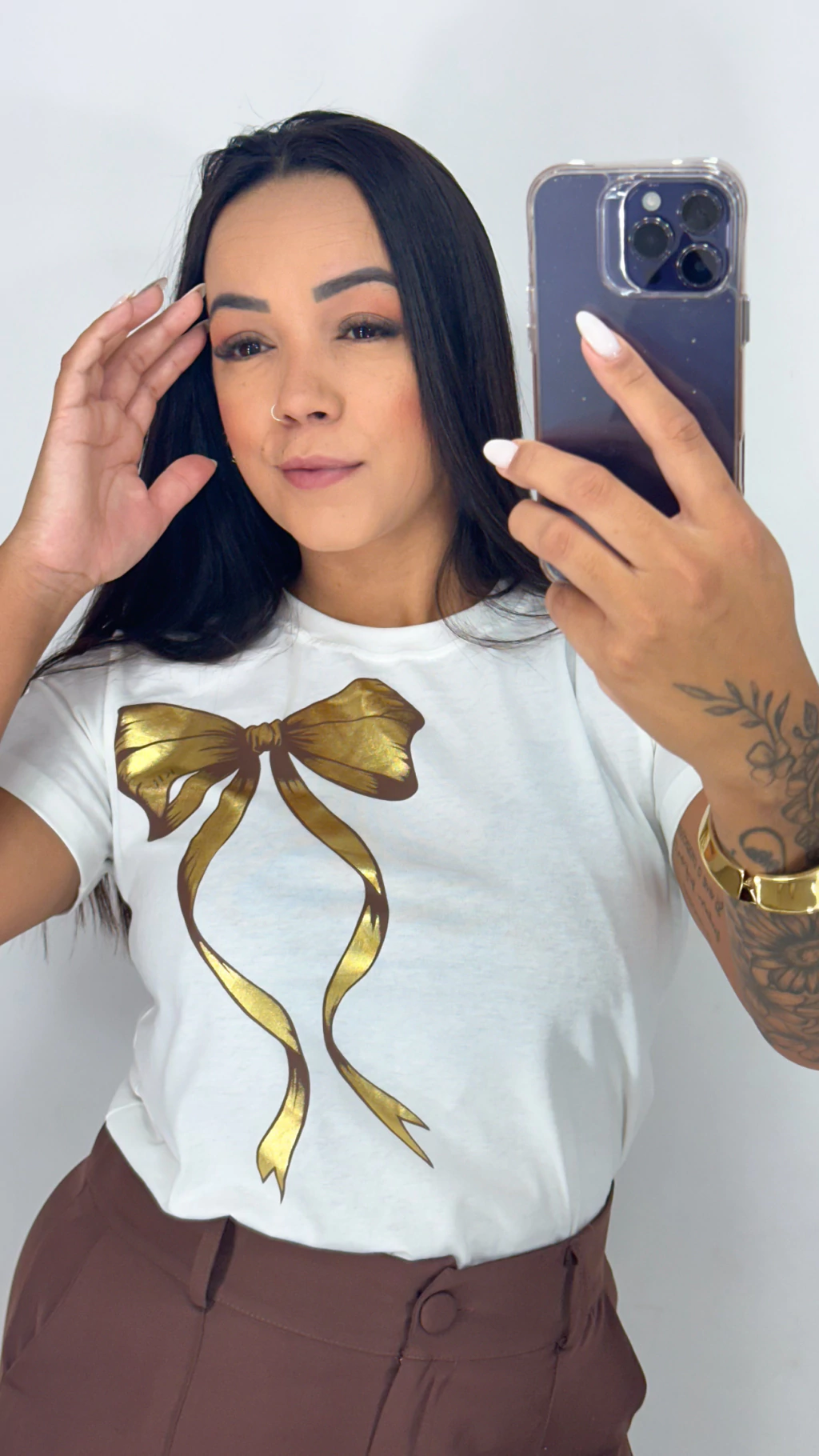 T-shirt Laço metalizada - Off whitte (veste P/M/G)